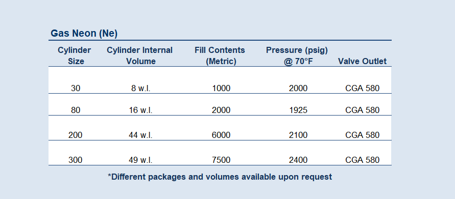 Neon is an inert noble gas present in trace amounts in the atmosphere and extracted through cryogenic air separation. Known for its stability and lack of chemical reactivity, neon is used in high-purity applications where consistency is essential. It is a critical component in excimer lasers for semiconductor lithography and for laser vision correction.